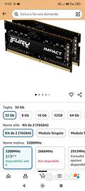 vendo 32 giga di RAM ddr4 2 banchi da 16....vendo per inutilizzo su Amazon costano 313 euro vendo per 230 euro
