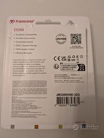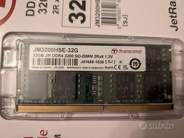 Vendo un modulo di RAM Transcended SODIMM 32GB DDR4-3200 MHz, del 05.2025. Perfettamente funzionante, usata 6 mesi, vendo per passaggio a nuovo laptop.