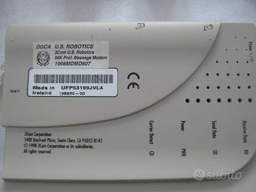 3Com U.S. Robotics 56K Fax modem Usato, funzionante, in buone condizioni Completo di alimentatore, cavo seriale, cavo telefonico e presa tripolare,