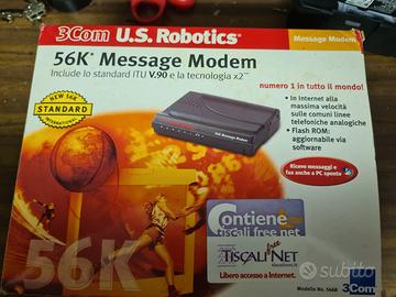 Modem fax 56K 3Com U.S. Robotics con scatola originale doppio alimentatore e doppi cavetti, cuffie originali mai usate ... tutto utilizzato anni fà per prova e poi riposto nella scatola, prezzo trattabile, da aggiungere eventuali spese di spedizione