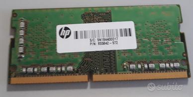4GB Memory Speed [MHz] -- 2400 MHz Memory Specification Compliance -- PC4-19200 Form Factor -- SODIMM 260-pin Technology -- DDR4 SDRAM Data Integrity Check -- Non-ECC RAM features -- Unbuffered, Non-Registered CAS Latency Timings -- CL17 Supply Voltage -- 1.2 V Fit -- Laptop notebook Perfettamente funzionante, sostituita per ampliare un notebook che ha uno slot solo. Spedizione esclusa Pagamenti accettati bonifico bancario