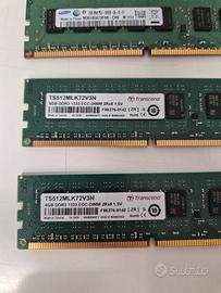 4 × RAM SAMSUNG 2GB 2R-8 PC3 1600E-09-10-E1 M391B5673FHO-CH9 M111 2 x RAM TRANSCEND 4 GB 2R-8 1.5 V DDR3 1333 ECC-DIMM TS512MLK72V3R Memoria RAM per pc computer workstation perfettamente funzionanti