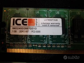 Vendo blocco 4 ram DDR2 marca ICE da 1gb l'una modello: IMD240D2667G01O 1 GB DDR2-667 DIMM CL5 PC2 5300