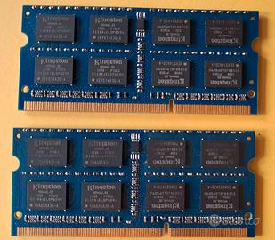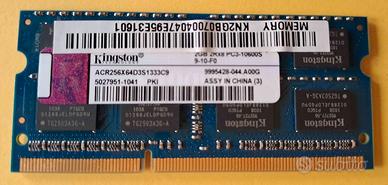 Numero 2 Schede RAM da 2 Gigabite ciascuna per notebook, laptop o altro, marca KINGSTONE frequenza 1333
