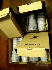 4X confezioni di toner originali Konica Minolta MT 102B per fotocopiatrici Minolta, nuovi, ancora sigillati, a 3 euro per l'intero lotto.
