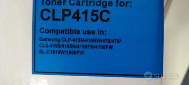 5 cartucce 3 colore e due nero per cambio stampane kit CLP415 completo nuovo imballato chiuso colore + due cartuccie nero compatibili con stampanti samsung LASER A4 COLORI F-R 3010 M3820ND contattare valeria al 3513822133