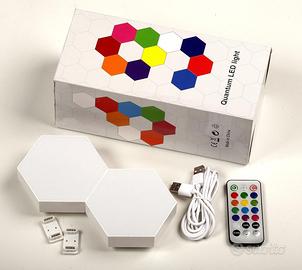 [Contenuto della confezione] 6 moduli esagonali, 6 ganci, 1 telecomando (batterie incluse), 1 cavo USB, 1 manuale utente (lingua italiana non garantita).
