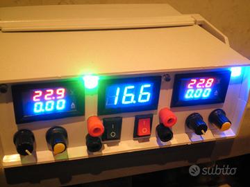 Vendo alimentatore doppio regolabile switching NUOVO autocostruito. Funzionamento : Accenzione, alimentatore 1 o alimentore 2 o entrambi. Alimentatore 1 regolabile da 1,2 a 23V c.a e corrente regolabile da 0 a 6A con picchi di 7. Alimentatore 2 regolabile da 1.2 a 23V c.a. e corrente da 0 a 6A con picchi di 7. Munito di 2 voltmetri/amperometro, 2 ventole raffreddamento controllate da termostato che si attivano intorno ai 40°. L'alimentatore verrà spedito con cavo di rete e 2 cavi per utilizzo con pinze! SPEDIZIONE GRATUITA E IMMEDIATA!!!