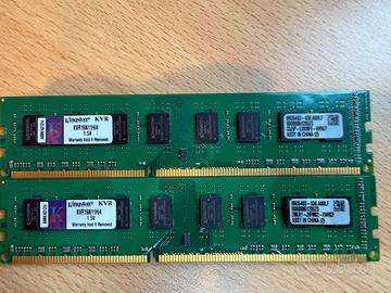 2 banchi da 4 gb di ram PC3-12800 sigla KVR16N11H/4, Kingston. Ottiem condizioni, ritiro a mano Roma Aurelia o Palmiro Togliatti.