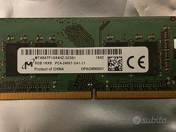 Micron DDR4-2400 SODIMM (per laptop e pc portatile) Singolo banco da 8 GB Modello: MTA8ATF1G64HZ-2G3B1