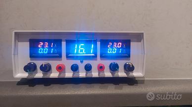 Vendo alimentatore doppio regolabile switching NUOVO autocostruito. Funzionamento : Accenzione, alimentatore 1 o alimentore 2 o entrambi. Alimentatore 1 regolabile da 1,2 a 23V c.a e corrente regolabile da 0 a 6A con picchi di 7. Alimentatore 2 regolabile da 1.2 a 23V c.a. e corrente da 0 a 6A con picchi di 7. Munito di 2 voltmetri/amperometro e un termometro, per il controllo della temperatura interna. 2 ventole di raffreddamento, che entreranno in funzione a 40°ca(led centrale acceso) e si spegneranno a 35°ca. L'alimentatore verrà spedito con cavo di rete e 2 cavi per utilizzo con pinze. SPEDIZIONE GRATUITA E IMMEDIATA!!!