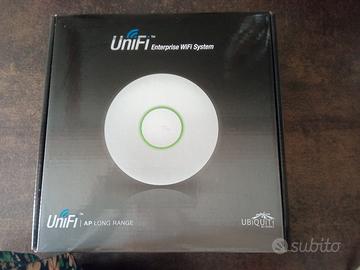 10 Access Point UniFi Ubiquity, versione 2.4.5, frequenza 2400/2483.5, interfaccia 10/100 ethernet Port, Wi-Fi standard 802.11 da 2.4 GHz, passive Power over ethernet 12-24 V, WEP, WPA-PSK, WPA-TKIP, WPA2, AES, 802.11i.