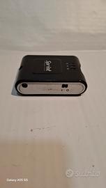 Piccolo dispositivo elettronico portatile di Sprint Technology. L'articolo si presenta in buone condizioni estetiche, con minimi segni di usura visibili in particolare sul bordo metallico laterale. Il corpo è nero e compatto. Le porte includono un ingresso Mini-USB (sul lato) e un interruttore on/off affiancato da un piccolo jack (sull'altro lato). Sulla parte frontale sono presenti tre indicatori luminosi. Ideale per collezionisti o per chi cerca un ricambio specifico. Si prega di notare che l'articolo viene venduto senza cavi o altri accessori aggiuntivi.