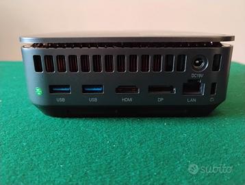 Acemagician TK11-A0 Minipc (16+512) Minipc con sistema operativo reinizializzato al produttore di fabbrica. Acemagician TK11-A0 Intel Core i5 1135G7 CPUIntel Core 11th i5 1135G7 ( up to 4.20 GHz) 4 Cores/8 Threads – (8M Cache) GPUIntel® Iris® Xe Graphics (Graphics Frequency 1.30 GHz) MemoryDDR4 16GB Dual channel (SODIMM Slots ×2, up to 64GB) StorageM.2 2280 NVMe SSD 512GB, Max to 2TB Storage Expansion1× 2.5 inch SATA 3 HDD Slot Wireless ConnectivityWi-Fi 6 Bluetooth 5.2 Ethernet1x 1 Gigabit Ethernet Port Video Output1x HDMI 2.0 (4K@60Hz) 1x DP (8K@60Hz) 1x Thunderbolt 4 (8K@60Hz) Audio Output1x audio jack 3.5 mm 1x Built-in Speakers 3W Stereo Sound Ports & Buttons1x Thunderbolt 4 (40Gbps + 8K + Charge) 1x Fingerprint Sensor 4x USB 3.0 1x HDMI 2.0 1x DP (8K@60Hz) 1x RJ45 1 Gigabit Ethernet Port 1x audio jack 3.5 mm SystemWindows 11 Pro