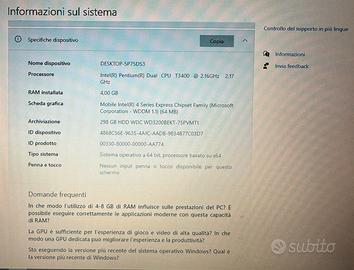 Processore: Intel(R) Pentium(R) Dual CPU T3400