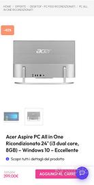 ACER All In One 24", Intel i3, Hdd 512 GB Ssd, Ram 16 gb Astenersi perditempo Consegna a Mano a Genova