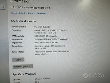 Acer pc dekstop all in one Schermo 24 pollici Processore AMD A9-9425 Ram 8 gb Ssd 256 gb Windows 10 Wi-Fi Non scambio con nulla, consegna a mano dopo visione