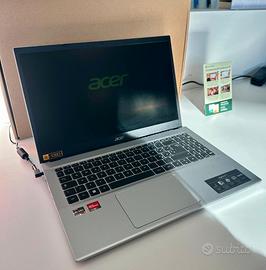 ACER Aspire 3 15 Display: 15,6'' FULL HD 1920x1080p CPU: AMD Ryzen 7 5700u GPU: AMD Radeon Graphics Memoria RAM: 16 GB DDR4 Archiviazione: SSD M.2 512 GB PCle Connettività: 3 USB 3.0 + 1 USB-C + WiFi 6/Bluetooth 5.2 Software: Windows 11 Home Consigliato per operazioni di ufficio/multimedia/gaming