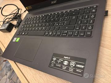 Vendo un fantastico laptop ACER ASPIRE 3, anno 2021. È perfetto per lo studio, il lavoro e, grazie alla scheda grafica integrata, è possibile anche giocare a giochi non troppo complessi. Ha le seguenti caratteristiche: