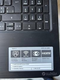 Vendo pc portatile Acer Aspire 3 con Intel Celeron e processore N3060 4GB DDR3 L Memory e 1000 GB HDD colore nero