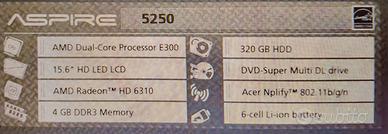acer aspire 5250 con win7 perfetto con caricabatterie, batteria con pochissima autonomia