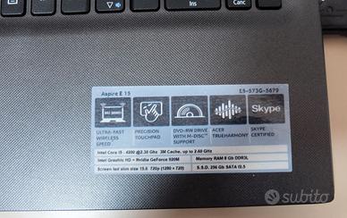 Offro Acer Aspire E15-573 pc portatile perfetto, foto reali e descrizione foto n4. Funzionalità ed estetica ottimali. CPU Intel i5-4200, Grafica Intel HD + Nvidia GeForce 920M. Ram 8 Gb , SSD 256 Gb, USB v.3 , HDMI,DVD Combo. Batteria oltre 2,30, a corredo caricabatteria