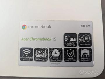 Vendo Chromebook Acer 15'. Il chromebook, avendo finito il life cycle degli aggiornamenti, è stato sbloccato ed ho installato il sistema operativo Linux basato su Distribuzione Ubuntu con Zorin os 17 Core.