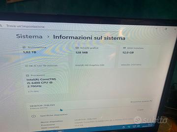 Acer Desk.i5.6400 RAM.12.Gb.DDR4. SSD.128.Gb.più Hd.1.Terabyte vedi foto.SOLO PC.