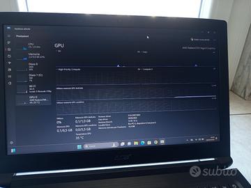 Vendo pc portatile acer aspire 3 perfettamente funzionante, ram nuova, ssd nuova, hdd nuovo. Il pc è pronto all'uso, ottimo per giocare, per uso quotidiano o per grafica. SOLO PERSONE SERIE ED INTERESSATE! Il prezzo è in linea con gli upgrade effettutuati, la valutazione della stessa e le condizioni della macchina. 🧠 CPU: AMD Ryzen 5 2500U (4 core / 8 thread) | 2.0 GHz base – fino a 3.6 GHz boost | ottimo multitasking 🎮 GPU: AMD Radeon Vega 8 integrata da 1GB in condivisa fino a 6,5GB| perfetta per uso quotidiano, grafica leggera e gaming fluido 💾 RAM: 12GB DDR4 espandibili fino a 16GB| ideale per multitasking avanzato e uso professionale 🚀 ARCHIVIAZIONE: SSD NVMe 256GB (velocissimo) + HDD 1TB (ampio spazio per file e giochi) 🖥️ DISPLAY: 15.6” Full HD (1920x1080) | ottima qualità visiva per lavoro e intrattenimento 🔊 MULTIMEDIA: Audio stereo + Webcam HD integrata per videochiamate 🔌 PORTE & CONNETTIVITÀ: Wi-Fi - Bluetooth - USB 3.0 - USB 2.0 - HDMI - LAN Ethernet - Jack cuffie/microfono - Lettore SD ⌨️ PERIFERICHE: Tastiera comoda e reattiva - Touchpad preciso 🔋 Batteria al 70% di autonomia residua 🖥️ SOFTWARE: Windows 11 Pro attivato + Office 2024 Pro Plus attivo senza scadenza | pronto all’uso 🎮 GAMING (60 FPS STABILI): Fortnite, League of Legends, Valorant, CS:GO, Rocket League, Minecraft, GTA V (settaggi medi), The Sims 4, Fall Guys, Overwatch 2, Dota 2, Team Fortress 2, Left 4 Dead 2, Paladins, Warframe, Terraria, Stardew Valley, Hades, Cuphead, Hollow Knight.