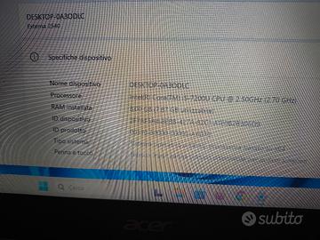 Acer Extensa 2540 Intel I5 7th RAM 8 GB SSD 120 ( NUOVO ) WINDOWS 11 PRO 25H2 CARICATORE INCLUSO Batteria Ottima! Veloce scattante pronto all'uso!