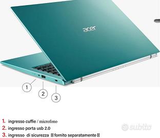 Acer Laptop SSD, Laptop PC, Intel N 6000, 4 Cores, RAM 12 Gb, SSD 750 GB, 15.6" Full HD Display, 3 USB, Wi-Fi, HDMI, Bt, LAN, Win 11 Pro, Libre Office, Ready to Use, Gar. and Italy Layout