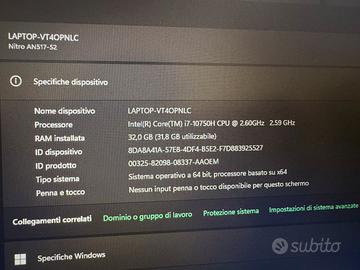 Acer nitro 5 AN 517-52 NVIDIA RTX 3060 I7 10750H