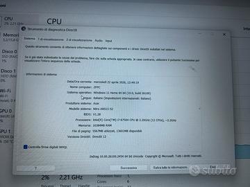 Vendo potente computer portatile da gaming Acer Nitro 5 (modello AN515-52) in ottime condizioni estetiche e funzionali. Il PC è stato pagato originariamente 1000€ e lo vendo per passaggio a modello superiore. È una macchina perfetta per il gaming (titoli come Fortnite, Valorant, Minecraft, LoL girano fluidamente), per l'università o per editing video/foto grazie al processore i7 e ai 16GB di RAM. Caratteristiche Tecniche: • Processore: Intel Core i7-8750H (6 core, 12 thread) - Molto prestante. • Memoria RAM: 16 GB DDR4. • Scheda Video: NVIDIA GeForce GTX 1050 Ti con 4GB dedicati. • Archiviazione: 1 TB di spazio totale (Configurazione SSD + HDD per velocità e spazio). • Schermo: 15.6" Full HD IPS (colori ottimi e ampi angoli di visione). • Sistema Operativo: Windows 11 Home già installato e attivato. • Tastiera: Retroilluminata in rosso (layout QWERTY). Condizioni del prodotto: Il PC è tenuto molto bene, senza graffi rilevanti o botte. Nota sulla ventola: Segnalo per massima correttezza che una delle ventole è diventata leggermente più rumorosa del normale. Il computer non scalda eccessivamente e funziona perfettamente, ma la ventola avrebbe bisogno di una pulita o di una sostituzione (costo del ricambio circa 10-15€ ). Ho già abbassato il prezzo finale tenendo conto di questo piccolo intervento. Incluso nella vendita: • PC Acer Nitro 5. • Caricabatterie originale incluso. Prezzo: 350€ (non trattabili, visto il prezzo di partenza e le specifiche).