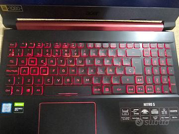 Modello Acer Nitro 5 mod. AN515-54-71AU Processore Intel core i7 di nona generazione 16GB di RAM ddr 4 SSD 1 TB Display: 15,6 pollici Full HD (1920 x 1080) con tecnologia IPS e frequenza di aggiornamento a 144 Hz NVIDIA GeForce GTX 1660Ti con 6 GB di memoria dedicata GDDR6. Batteria nuova appena sostituita ha solo 1 ciclo di ricarica. Windows 11 nuovo con licenza ATTENZIONE, unico neo ha la tastiera spagnola, VEDI FOTO, ma layout installato cmq italiano, nulla di problematico quindi.
