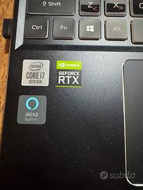Intel i7-10750H NVIDIA GeForce RTX 2060, 6 GB schermo 15,6” FULL HD 144Hz 3 ms IPS, DDR4 16 GB Tastiera retroilluminata RGB QWERTY