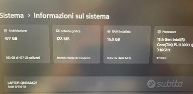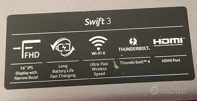 Vendo per acquisto nuovo notebook un Acer Swift 3 perfettamente funzionante con caricabatterie originale. Caratteristiche tecniche presenti in foto.