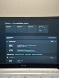 Vendo notebook Acer Swift SF314-59, perfetto per lavoro, studio e uso quotidiano. Design elegante, sottile e leggero, ideale da portare sempre con sé.