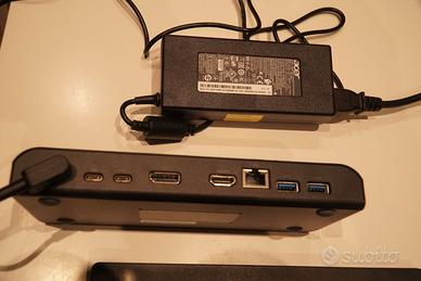 Alimentazione: Include un ingresso DC-in per il collegamento a un alimentatore esterno (solitamente da 90W o 135W), consentendo di alimentare la dock e, se supportato dal laptop, di ricaricarlo tramite il cavo USB-C.