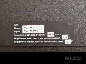 Vendo monitor Acer VG240Y BMIIX per passaggio a monitor 27 pollici.