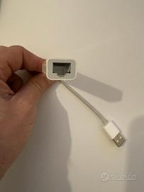 Vendo adattatore originale Apple USB a Ethernet (RJ45), ideale per collegare MacBook o altri dispositivi compatibili a una rete cablata.