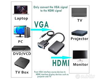 Adattatore da VGA a HDMI 1080P, Convertitore da VGA to HDMI con Audio Video, Converter Adapter VGA Maschio a HDMI Femmina Connettore per Collegamento di Laptop, Proiettore, PC, TV Box, Monitor
