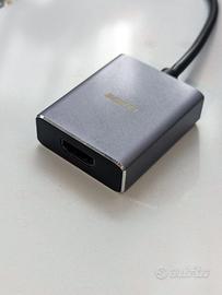 Vendo adattatore BENFEI per collegare PC o laptop a un secondo monitor, TV o proiettore. Ideale per lo smart working o per estendere lo schermo del computer. • Condizioni: Ottimo, poco usato e ben conservato • Qualità Video: Supporta Full HD (1080p @ 60Hz) per immagini fluide e nitide. • Design Premium: Scocca in alluminio (robusta e dissipa meglio il calore rispetto alla plastica). • Ultra Compatto: Leggero e tascabile, perfetto da tenere nella borsa del laptop. • SOLO PER WINDOWS : Compatibile con Windows 11/10/8/7. NON funziona su Mac/MacBook. • Porta USB 3.0: Per la massima qualità (1080p) serve una porta USB 3.0 (quella blu). Se usato su USB 2.0, la risoluzione si ferma a 800x600. • Direzione segnale: Funziona solo da USB (Computer) verso HDMI (Monitor). Non è bidirezionale.