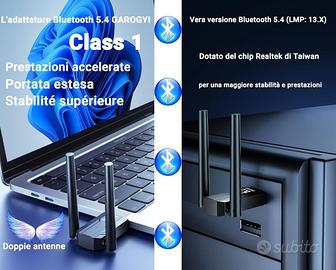= Prodotto nuovo = Dispositivo Bluetooth 5.4 USB con doppia antenna. Dongle Bluetooth a lungo raggio per PC, ottimo per mouse, tastiera, cuffie, smartphone, controller etc. Compatibile con Windows 11 / 10 / 8.1 / 7.