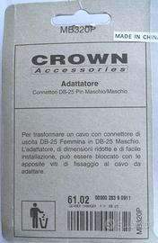 Per trasformare un cavo con connettore di uscita DB-25 Femmina in DB-25 Maschio. L'adattatore, di dimensioni ridotte e di facile installazione, può essere bloccato con le apposite viti di fissaggio al cavo da adattare.