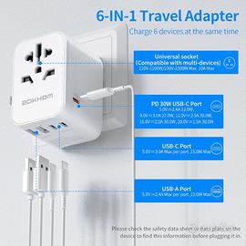 Alimentazione 6 dispositivi contemporaneamente. Contiene 2 x USB-A, 3 x USB C, tra cui un QC3 (ricarica rapida), 1 x presa di alimentazione universale. Quando sei in vacanza, può ricaricare i tuoi dispositivi e quelli dei tuoi compagni di viaggio in varie camere d'albergo di notte e nei caffè e nei treni durante il giorno. Puoi anche usarlo a casa per ricaricare più dispositivi.