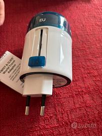 Adattatore per prese elettriche per viaggiare in tutto il mondo. Le spine si tirano fuori e si fanno rientrare. Milto compdo da mattere in valigia senza rischiare di piegare qualcosa