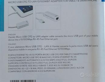 Adattatore Hamlet Micro USB OTG a Lan 10/100 per smartphone e tablet
