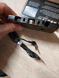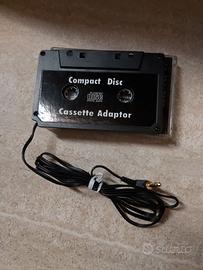 Adattatore a cassetta per dispositivi audio, noto come "Compact Disc Cassette Adaptor". Questo tipo di dispositivo veniva utilizzato per riprodurre audio da sorgenti esterne (come lettori CD o dispositivi con uscita jack da 3,5 mm) attraverso un'autoradio con lettore di cassette. Il cavo con il jack da 3,5 mm si collega alla sorgente audio, mentre la parte a forma di cassetta viene inserita nel lettore cassette.