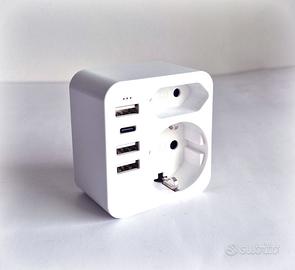 Adattatore presa inglese 6 in1, carica 6 dispositivi in parallelo, con 3 USB e 1 USB-C e spina europea e schuko Il tipo G è adatto per Regno Unito/Irlanda/Malta Adattatore Tipo G: Adatto a oltre 30 paesi, tra cui Regno Unito, Irlanda, Malta, Dubai, Maldive, Malesia, Singapore, India, Pakistan, Zambia, Uganda, Brunei, Ghana, Kenya, Macao, Mauritius, Arabia Saudita, Emirati Arabi Uniti, Yemen, Zimbabwe, Cambogia, Myanmar, Indonesia, Bhutan, Bangladesh, Sri Lanka, Iraq, Kuwait, Bahrein, Qatar, Libano, ecc. Ricarica Multifunzione 6 in 1: 1 presa Schuko + 1 presa Europlug + 1 porta di ricarica rapida Type-C (3A/fino a 17W) + 3 porte USB (5V/3,4A). Può caricare efficacemente 6 dispositivi contemporaneamente ed è compatibile con telefoni cellulari, laptop, tablet, power bank, fotocamere, spazzolini elettrici, rasoi e altri dispositivi per migliorare l'efficienza di ricarica. Leggero e Portatile: Con un peso di soli 130 grammi e dimensioni compatte (65×68×70 mm), può essere facilmente riposto nel bagaglio a mano, consentendoti di viaggiare senza preoccupazioni Plug and Play (non trasformatore): Nota: questo prodotto è un adattatore presa UK, non un convertitore di tensione. È adatto solo per dispositivi a doppio voltaggio o a voltaggio universale con un intervallo di tensione di ingresso di 100-230V. Verificare i requisiti di tensione del dispositivo prima dell'uso. Contenuto Della Confezione: 1 adattatore per spina UK, 1 manuale di istruzioni