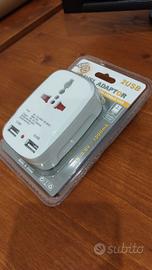 Adattatore da viaggio per prese inglesi (Tipo G) con porte USB, colore bianco.